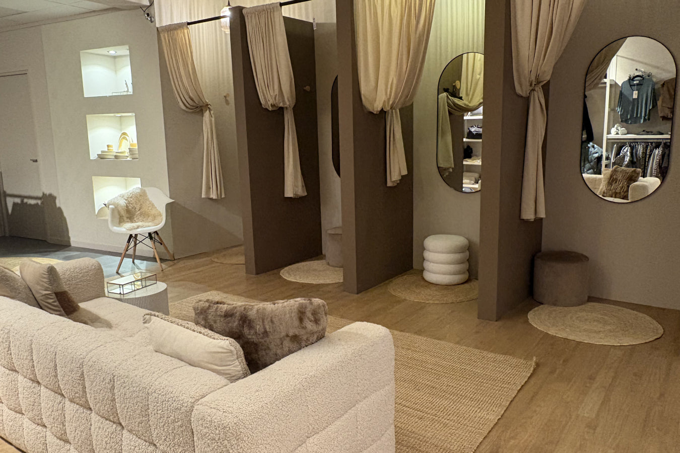 Onze conceptstore is meer dan een winkel. De winkel is ruim ingericht, zodat je alle ruimte hebt om onze collecties op je gemak te bekijken. Comfort en privacy stonden vanaf het begin centraal - het moest een plek worden waar je je direct welkom voelt. Een winkel waar ik zelf graag zou komen.